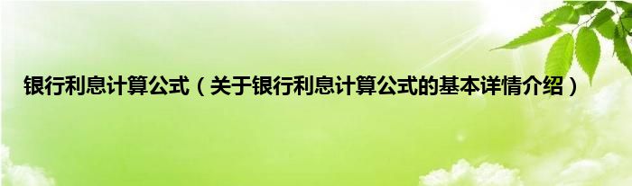 本文关于银行利息计算公式的基本详情介绍就讲解完毕,希望对大家有所帮助。