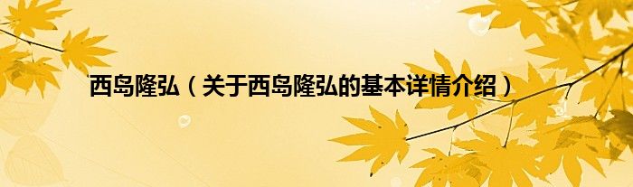 本文关于西岛隆弘的基本详情介绍就讲解完毕,希望对大家有所帮助。