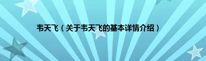 本文关于韦天飞的基本详情介绍就讲解完毕,希望对大家有所帮助。