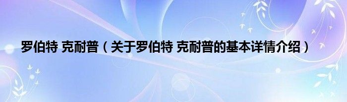 本文关于罗伯特 克耐普的基本详情介绍就讲解完毕,希望对大家有所帮助。