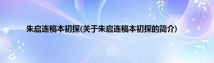 本文关于朱启连稿本初探的简介就讲解完毕,希望对大家有所帮助。