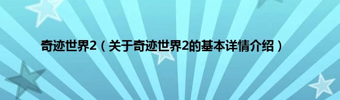 本文关于奇迹世界2的基本详情介绍就讲解完毕,希望对大家有所帮助。