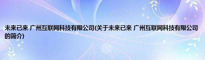 本文关于未来已来 广州互联网科技有限公司的简介就讲解完毕,希望对大家有所帮助。