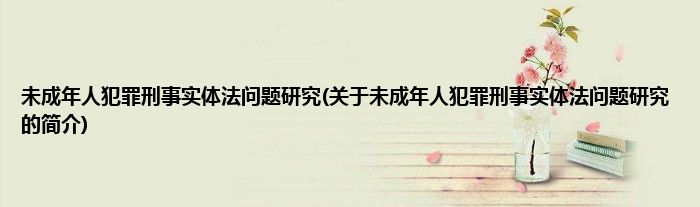 未成年人犯罪刑事实体法问题研究(关于未成年人犯罪刑事实体法问题研究的简介)