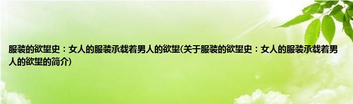 本文关于服装的欲望史:女人的服装承载着男人的欲望的简介就讲解完毕,希望对大家有所帮助。