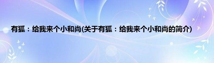 本文关于有狐:给我来个小和尚的简介就讲解完毕,希望对大家有所帮助。