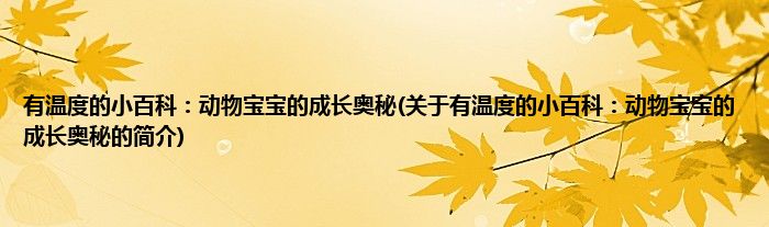 本文关于有温度的小百科:动物宝宝的成长奥秘的简介就讲解完毕,希望对大家有所帮助。