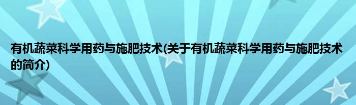 本文关于有机蔬菜科学用药与施肥技术的简介就讲解完毕,希望对大家有所帮助。