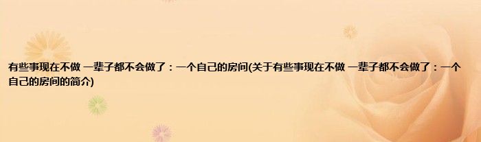 本文关于有些事现在不做,一辈子都不会做了:一个自己的房间的简介就讲解完毕,希望对大家有所帮助。
