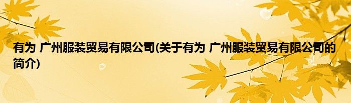 本文关于有为 广州服装贸易有限公司的简介就讲解完毕,希望对大家有所帮助。