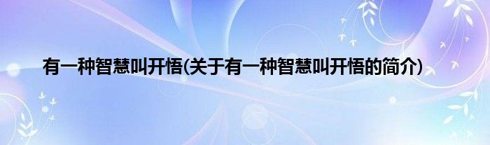 本文关于有一种智慧叫开悟的简介就讲解完毕,希望对大家有所帮助。