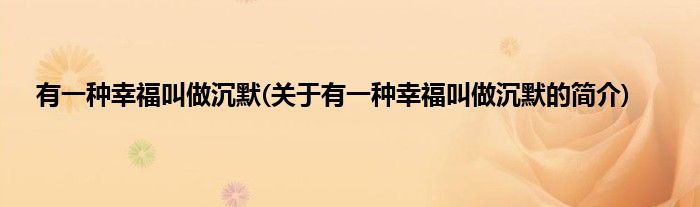 本文关于有一种幸福叫做沉默的简介就讲解完毕,希望对大家有所帮助。