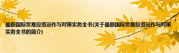 本文关于最新国际贸易投资运作与对策实务全书的简介就讲解完毕,希望对大家有所帮助。