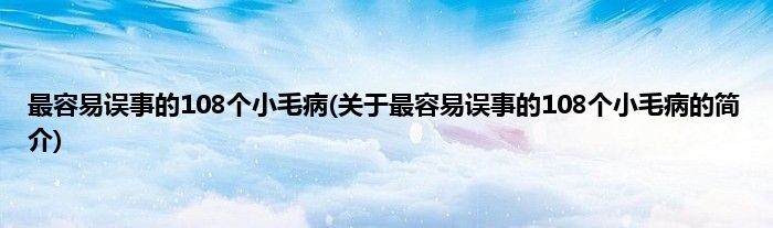 本文关于最容易误事的108个小毛病的简介就讲解完毕,希望对大家有所帮助。