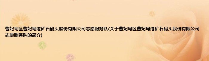 1、 曹妃甸区曹妃甸港矿石码头股份有限公司志愿服务队是由曹妃甸区曹妃甸港集团股份有限公司志愿服务队领导下的志愿团体。