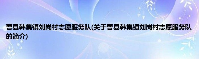 本文关于曹县韩集镇刘岗村志愿服务队的简介就讲解完毕,希望对大家有所帮助。