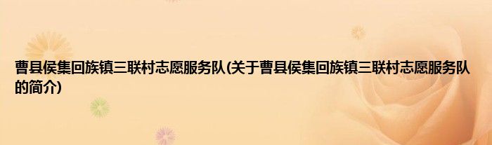 本文关于曹县侯集回族镇三联村志愿服务队的简介就讲解完毕,希望对大家有所帮助。