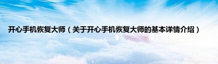 本文关于开心手机恢复大师的基本详情介绍就讲解完毕,希望对大家有所帮助。