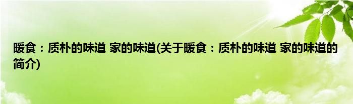 本文关于暖食:质朴的味道,家的味道的简介就讲解完毕,希望对大家有所帮助。