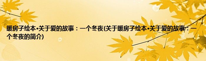 本文关于暖房子绘本·关于爱的故事:一个冬夜的简介就讲解完毕,希望对大家有所帮助。