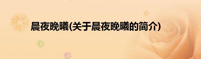 大家好,晨夜晚曦,关于晨夜晚曦的简介很多人还不知道,现在让我们一起来看看吧!
