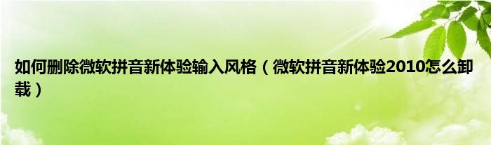 如何删除微软拼音新体验输入风格(微软拼音新体验2010怎么卸载)