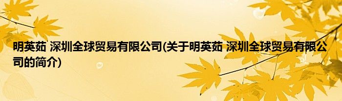 本文关于明英茹 深圳全球贸易有限公司的简介就讲解完毕,希望对大家有所帮助。