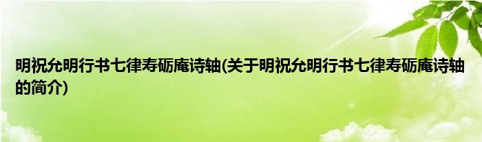 本文关于明祝允明行书七律寿砺庵诗轴的简介就讲解完毕,希望对大家有所帮助。