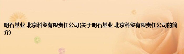 本文关于明石基业 北京科贸有限责任公司的简介就讲解完毕,希望对大家有所帮助。