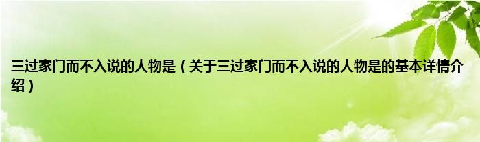 本文关于三过家门而不入说的人物是的基本详情介绍就讲解完毕,希望对大家有所帮助。