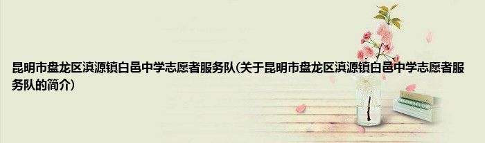 大家好,昆明市盘龙区滇源镇白邑中学志愿者服务队,关于昆明市盘龙区滇源镇白邑中学志愿者服务队的简介很多人还不知道,现在让我们一起来看看吧!