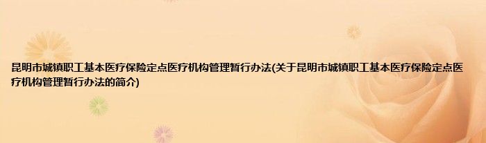 大家好,昆明市城镇职工基本医疗保险定点医疗机构管理暂行办法,关于昆明市城镇职工基本医疗保险定点医疗机构管理暂行办法的简介很多人还不知道,现在让我们一起来看看吧!