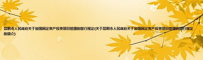 昆明市人民政府关于加强固定资产投资项目管理的暂行规定(关于昆明市人民政府关于加强固定资产投资项目管理的暂行规定的简介)