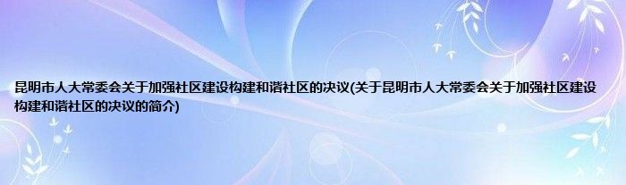 大家好,昆明市人大常委会关于加强社区建设构建和谐社区的决议,关于昆明市人大常委会关于加强社区建设构建和谐社区的决议的简介很多人还不知道,现在让我们一起来看看吧!