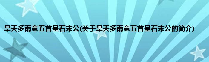 本文关于旱天多雨意五首呈石末公的简介就讲解完毕,希望对大家有所帮助。