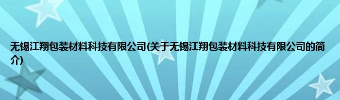 本文关于无锡江翔包装材料科技有限公司的简介就讲解完毕,希望对大家有所帮助。