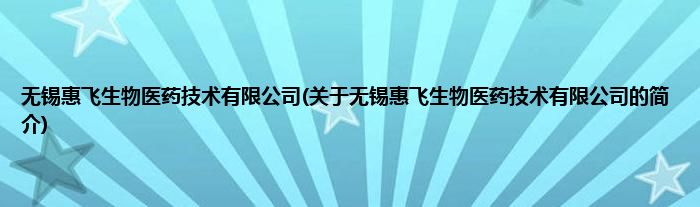 本文关于无锡惠飞生物医药技术有限公司的简介就讲解完毕,希望对大家有所帮助。