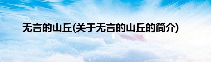 本文关于无言的山丘的简介就讲解完毕,希望对大家有所帮助。