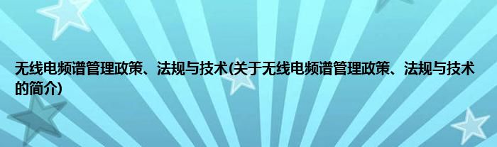 大家好,无线电频谱管理政策、法规与技术,关于无线电频谱管理政策、法规与技术的简介很多人还不知道,现在让我们一起来看看吧!