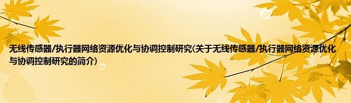 大家好,无线传感器/执行器网络资源优化与协调控制研究,关于无线传感器/执行器网络资源优化与协调控制研究的简介很多人还不知道,现在让我们一起来看看吧!
