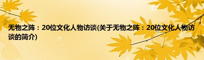 本文关于无物之阵:20位文化人物访谈的简介就讲解完毕,希望对大家有所帮助。