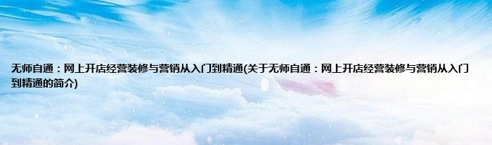 本文关于无师自通:网上开店经营装修与营销从入门到精通的简介就讲解完毕,希望对大家有所帮助。