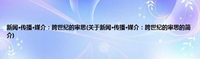 本文关于新闻·传播·媒介:跨世纪的审思的简介就讲解完毕,希望对大家有所帮助。