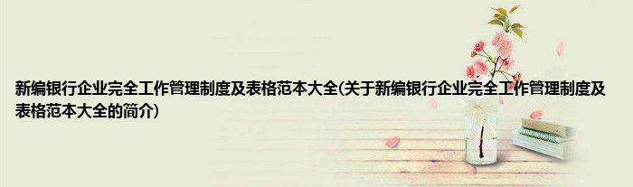 本文关于新编银行企业完全工作管理制度及表格范本大全的简介就讲解完毕,希望对大家有所帮助。