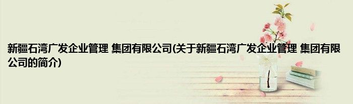 本文关于新疆石湾广发企业管理 集团有限公司的简介就讲解完毕,希望对大家有所帮助。