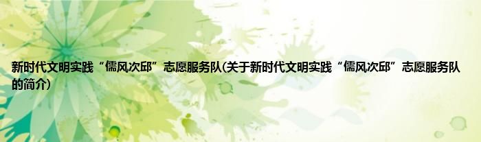 本文关于新时代文明实践“儒风次邱”志愿服务队的简介就讲解完毕,希望对大家有所帮助。
