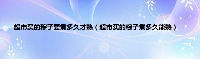 大家好,小科来为大家解答以上问题。超市买的粽子要煮多久才熟,超市买的粽子煮多久能熟很多人还不知道,现在让我们一起来看看吧!