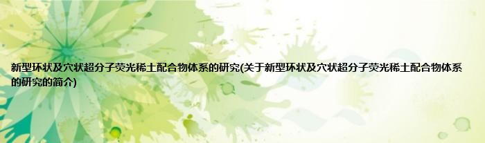 本文关于新型环状及穴状超分子荧光稀土配合物体系的研究的简介就讲解完毕,希望对大家有所帮助。