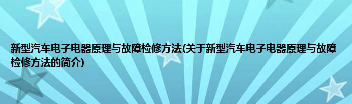 本文关于新型汽车电子电器原理与故障检修方法的简介就讲解完毕,希望对大家有所帮助。