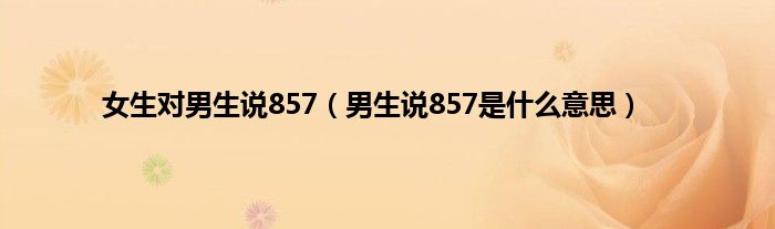 大家好,小科来为大家解答以上问题。女生对男生说857,男生说857是什么意思很多人还不知道,现在让我们一起来看看吧!